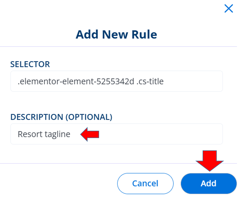 In the ensuing modal, you can optionally add a description for your rule. Click the blue "Add" button to finalize the rule.